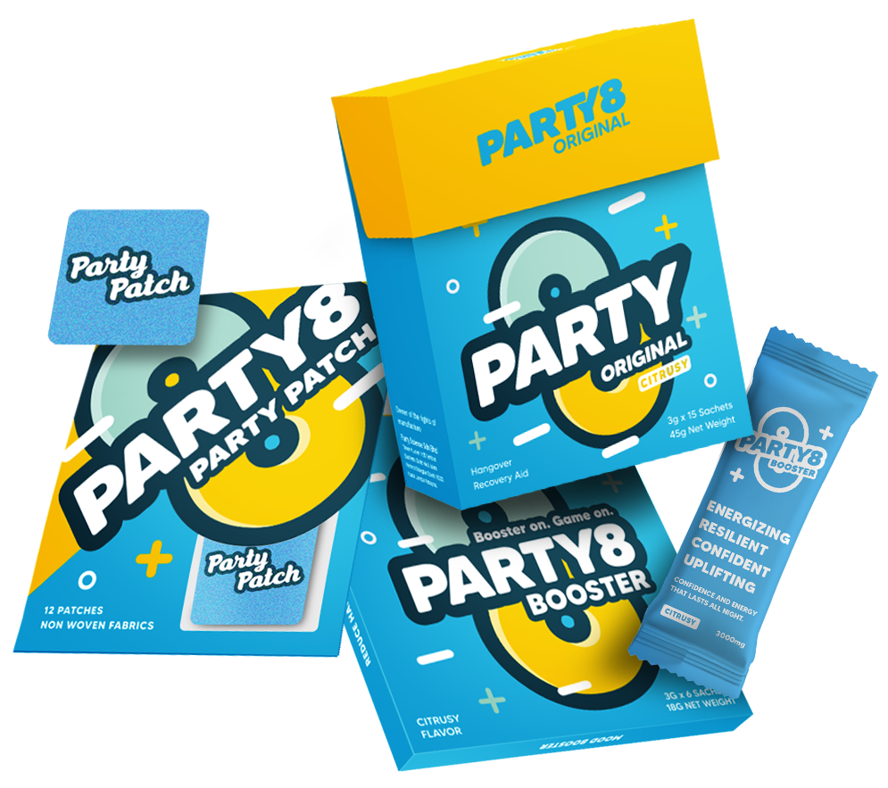 Elevate your party experience with Party8 Original. From dusk till dawn dances, sophisticated soirées, or relaxed gatherings, this easy-to-use hangover remedy seamlessly fits into any social scene. Make Party8 a part of your celebration ritual and keep enjoying responsibly, minus the hangovers.