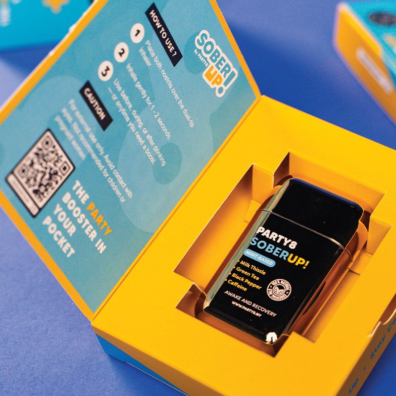 SoberUp by Party8 is your instant recovery inhaler designed to help you stay sharp, clear-headed, and comfortable—before, during, or after a night out. Infused with essential oils and herbal extracts, this all-natural aromatic stick offers rapid hangover relief, improved alertness, and breathing ease.